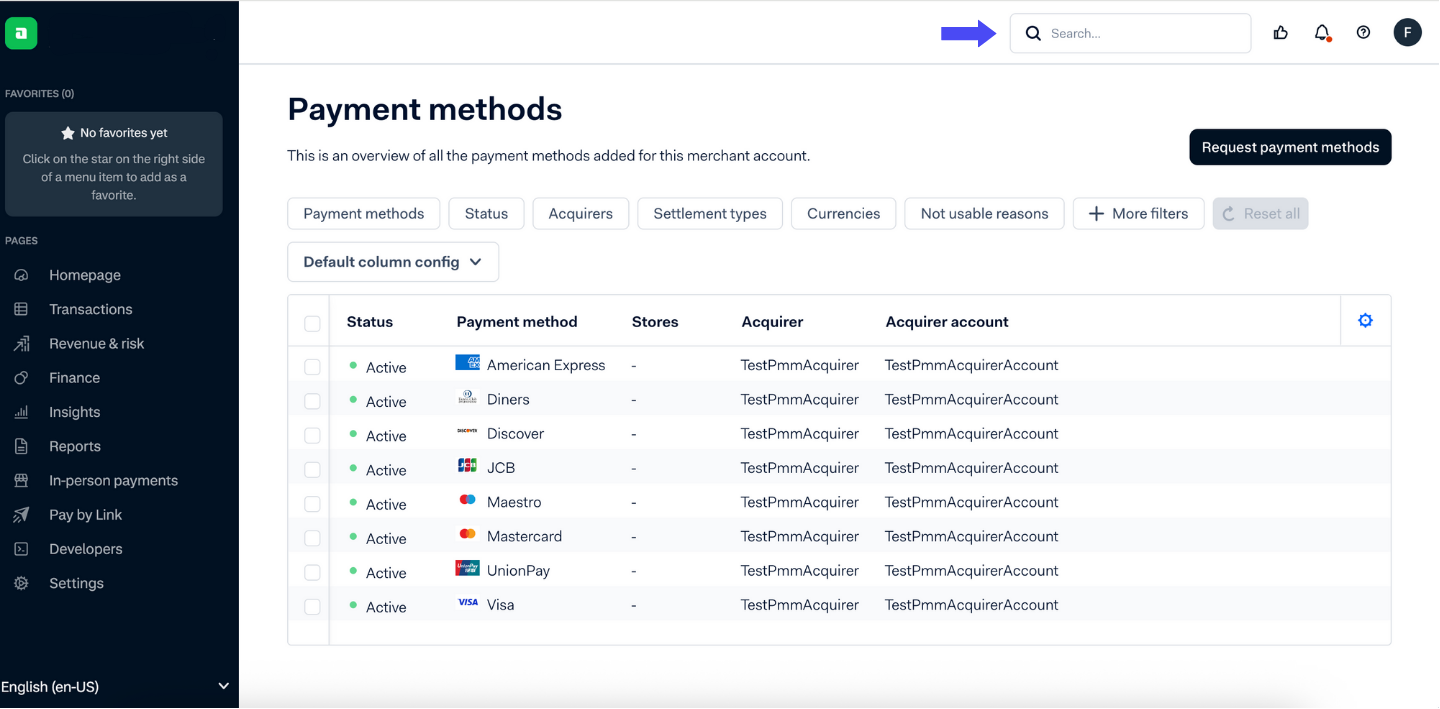 - Process test transactions and review in Adyen’s test Customer Area.