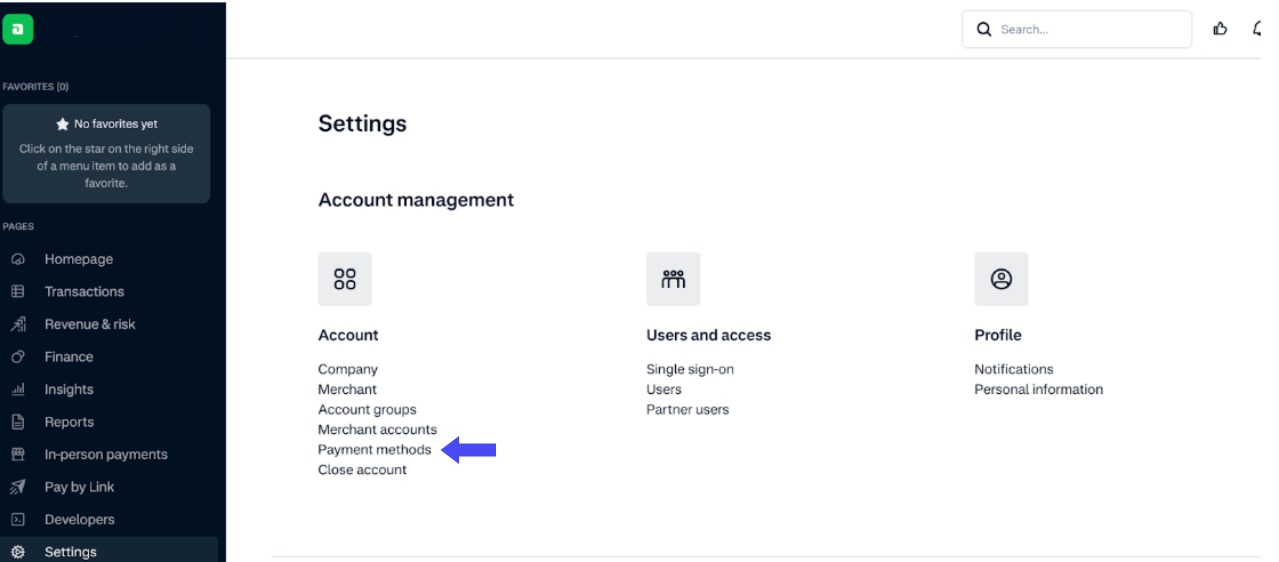 - Navigate to Payment Methods.