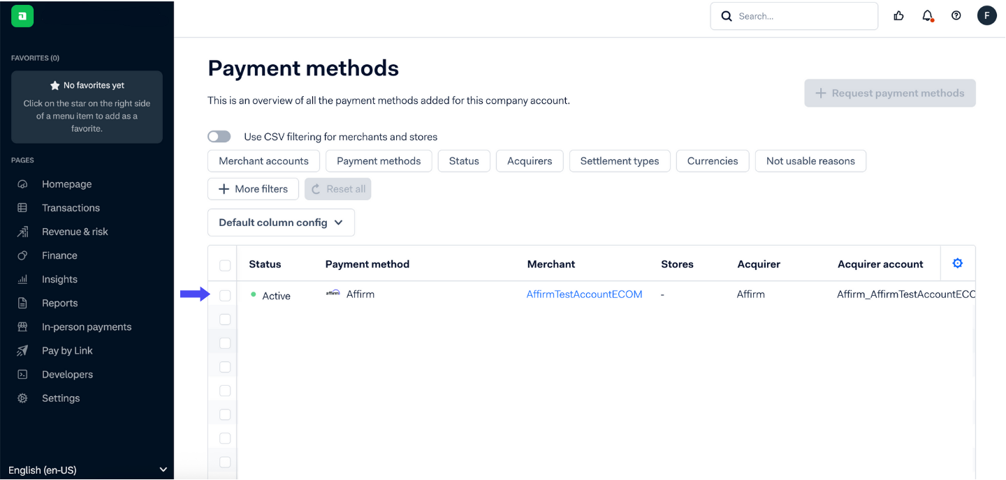 - Choose the merchant account(s) where Affirm should be available.